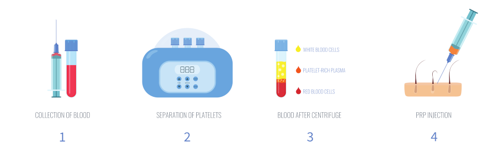 Blood is collected from patient in a specially designed tube which is then centrifuged. During centrifugation, a patented gel within the tubes isolates PRP from other unrequired cells within the blood. PRP is then ready for application by injecting back into the scalp. By activating follicular progenitor cells (adult stem cells) the application of PRP causes weak hair follicles to become healthier and larger, producing more robust hair growth.